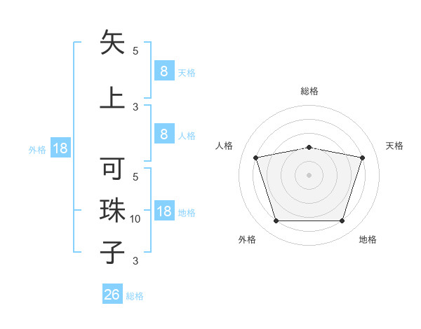 矢上 可珠子さんを姓名の画数から五運を鑑定