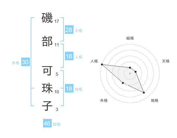 磯部 可珠子さんの総格は46画の1点!