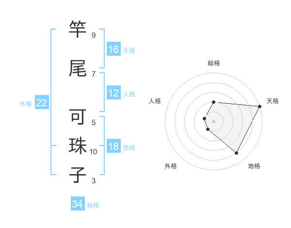 竿尾 可珠子さんを姓名の画数から五運を鑑定