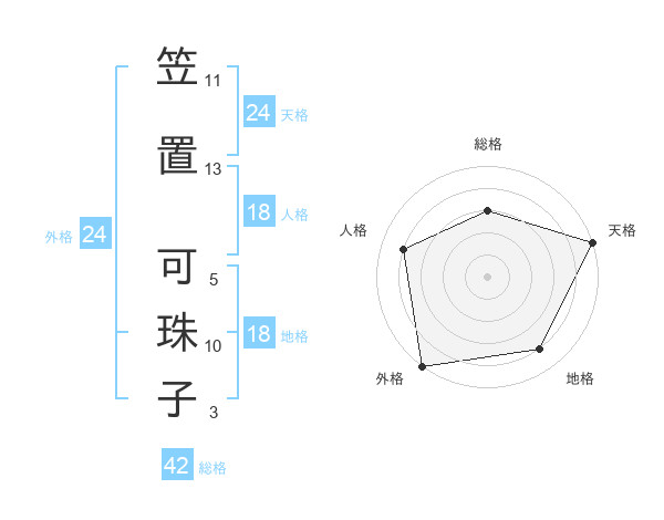笠置 可珠子さんを姓名の画数から五運を鑑定