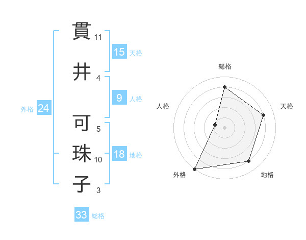 貫井 可珠子さんを姓名の画数から五運を鑑定