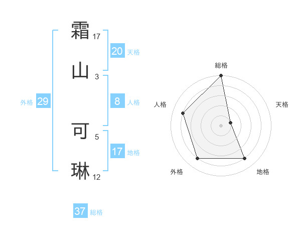 霜山 可琳さんを姓名の画数から五運を鑑定