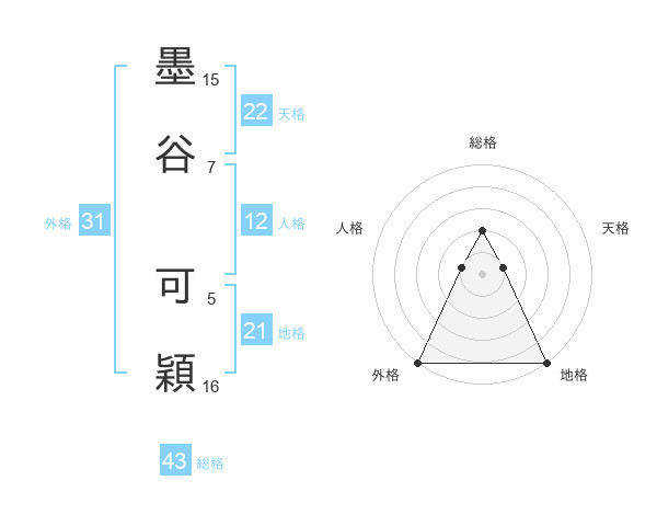 墨谷 可穎さんの総格は43画の2点!