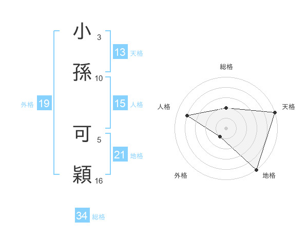小孫 可穎さんの天格は13画の5点!