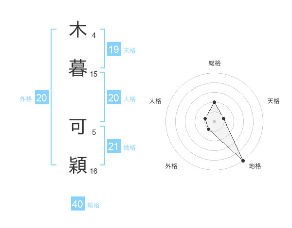 木暮 可穎さんの天格は19画の1点!