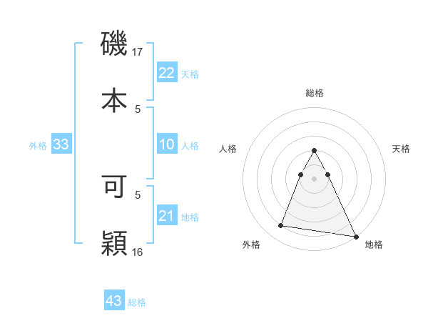 磯本 可穎さんを姓名の画数から五運を鑑定