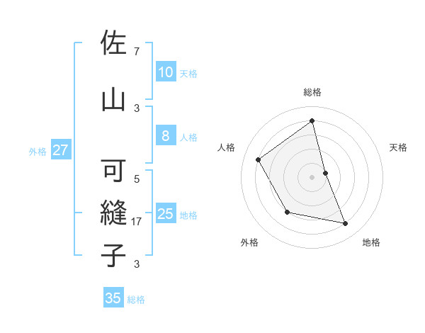 佐山 可縫子さんを姓名の画数から五運を鑑定