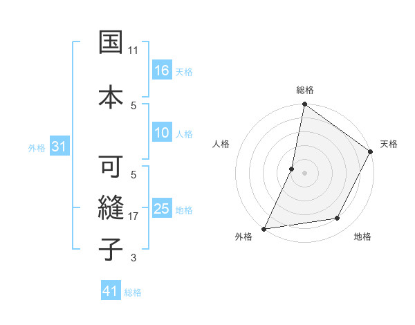 国本 可縫子さんを姓名の画数から五運を鑑定