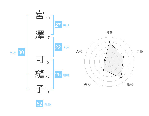 宮澤 可縫子さんを姓名の画数から五運を鑑定