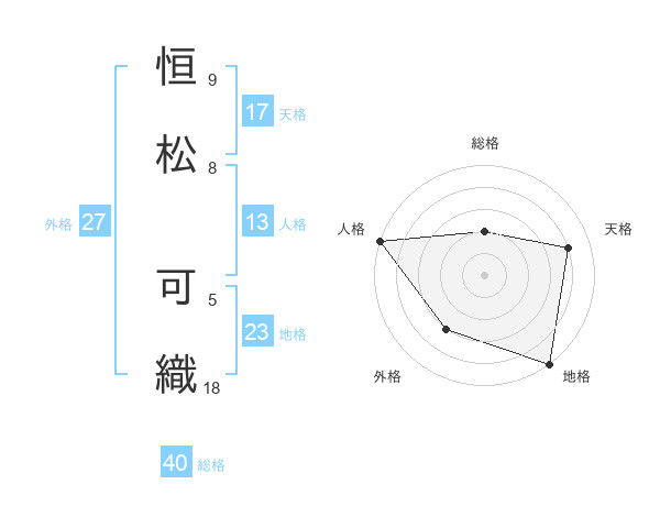恒松 可織さんの総格は40画の2点!