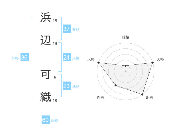 浜辺 可織さんの天格は37画の5点!