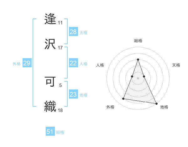 逢沢 可織さんを姓名の画数から五運を鑑定