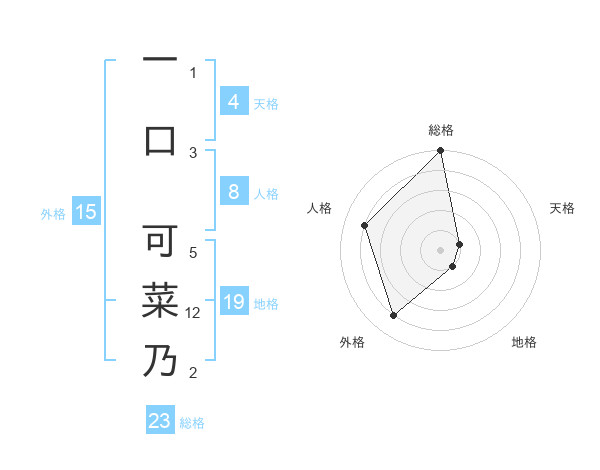 一口 可菜乃さんの総格は23画の5点!