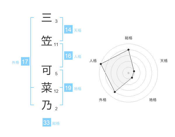 三笠 可菜乃さんを姓名の画数から五運を鑑定