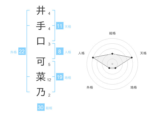 井手口 可菜乃さんの外格は22画の1点!