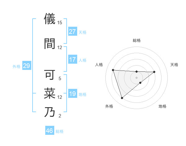 儀間 可菜乃さんを姓名の画数から五運を鑑定