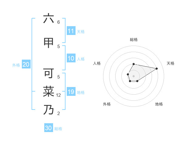 六甲 可菜乃さんを姓名の画数から五運を鑑定
