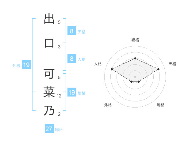 出口 可菜乃さんを姓名の画数から五運を鑑定
