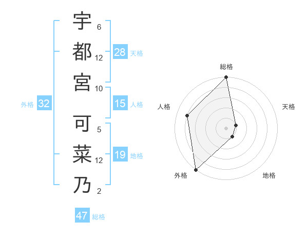 宇都宮 可菜乃さんを姓名の画数から五運を鑑定