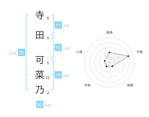 寺田 可菜乃さんの総格は30画の2点!