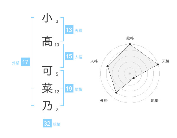 小髙 可菜乃さんを姓名の画数から五運を鑑定