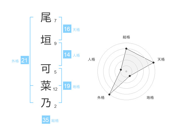尾垣 可菜乃さんの外格は21画の5点!