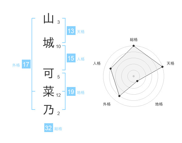 山城 可菜乃さんの天格は13画の5点!