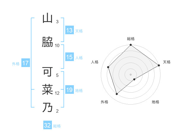 山脇 可菜乃さんを姓名の画数から五運を鑑定