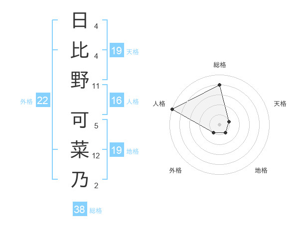 日比野 可菜乃さんを姓名の画数から五運を鑑定