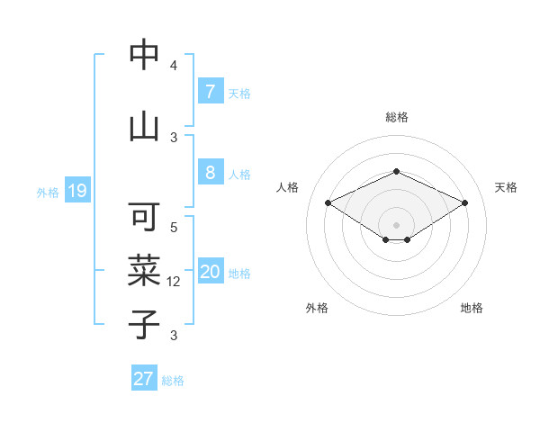 中山 可菜子さんを姓名の画数から五運を鑑定