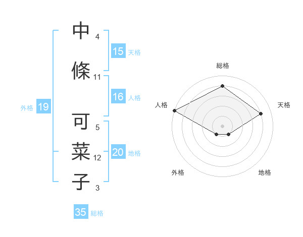 中條 可菜子さんの地格は20画の1点