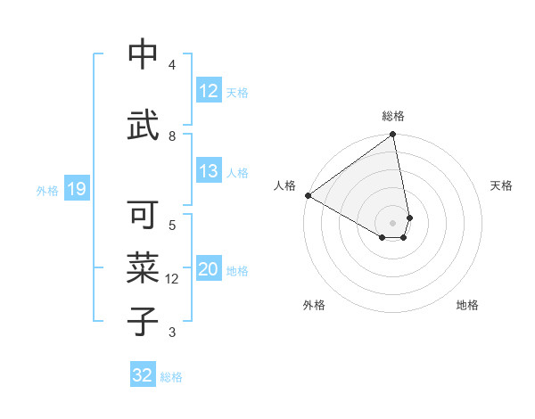 中武 可菜子さんを姓名の画数から五運を鑑定