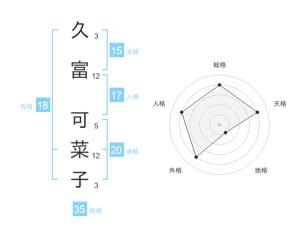 久富 可菜子さんを姓名の画数から五運を鑑定