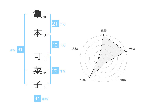 亀本 可菜子さんの天格は21画の5点!