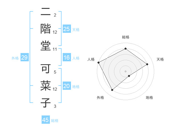 二階堂 可菜子さんの天格は25画の4点!