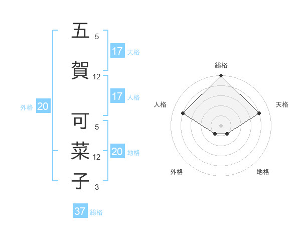 五賀 可菜子さんの天格は17画の4点!
