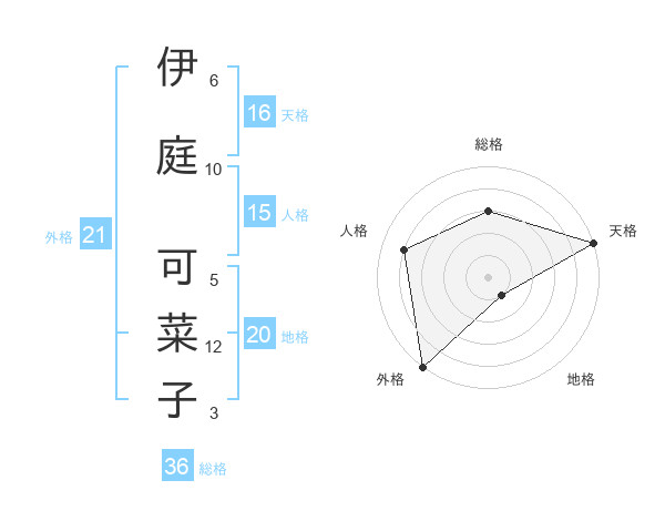 伊庭 可菜子さんの天格は16画の5点!
