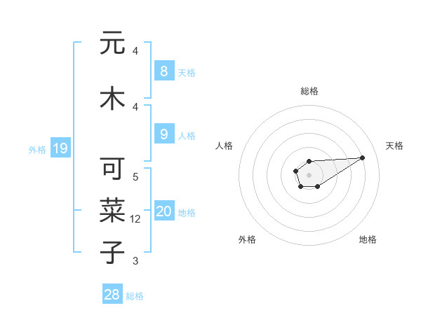 元木 可菜子さんを姓名の画数から五運を鑑定