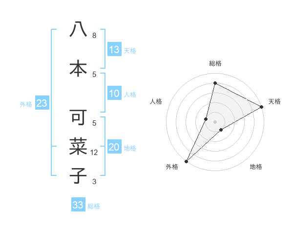 八本 可菜子さんの天格は13画の5点!