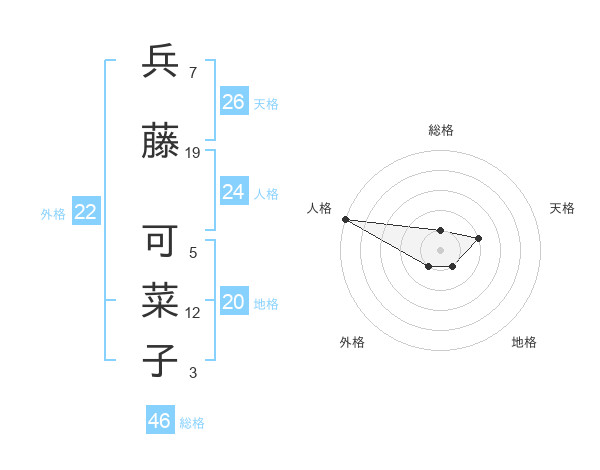 兵藤 可菜子さんを姓名の画数から五運を鑑定