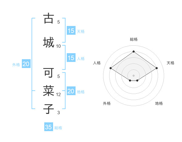 古城 可菜子さんの天格は15画の4点!