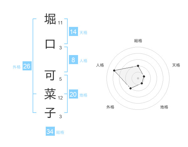 堀口 可菜子さんを姓名の画数から五運を鑑定