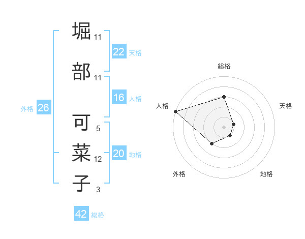 堀部 可菜子さんを姓名の画数から五運を鑑定
