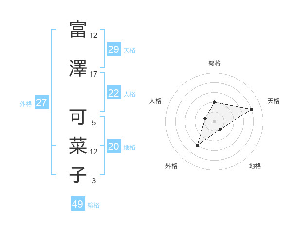 富澤 可菜子さんを姓名の画数から五運を鑑定