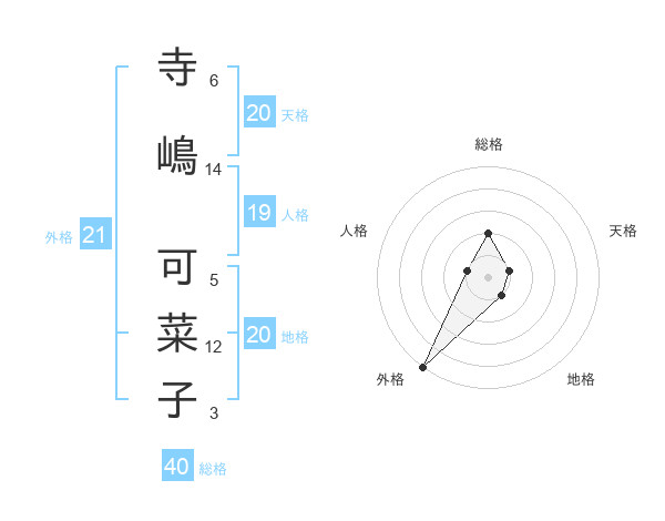 寺嶋 可菜子さんを姓名の画数から五運を鑑定