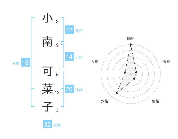 小南 可菜子さんの総格は32画の5点!