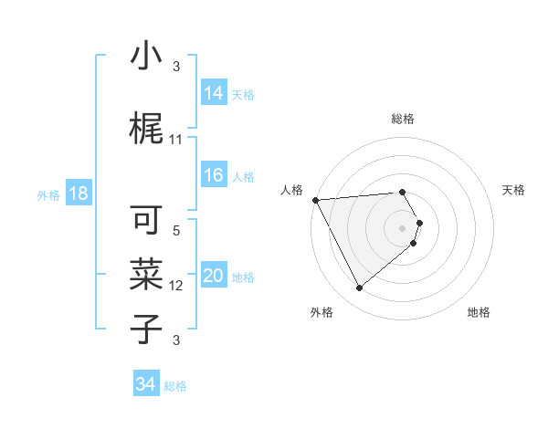 小梶 可菜子さんを姓名の画数から五運を鑑定