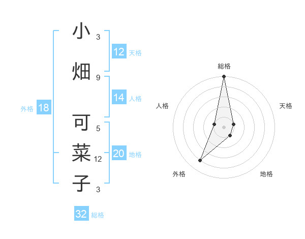 小畑 可菜子さんを姓名の画数から五運を鑑定