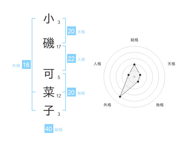 小磯 可菜子さんの外格は18画の4点!