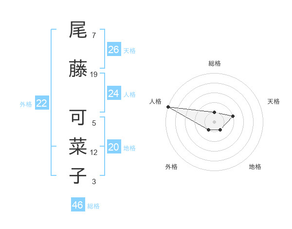 尾藤 可菜子さんを姓名の画数から五運を鑑定